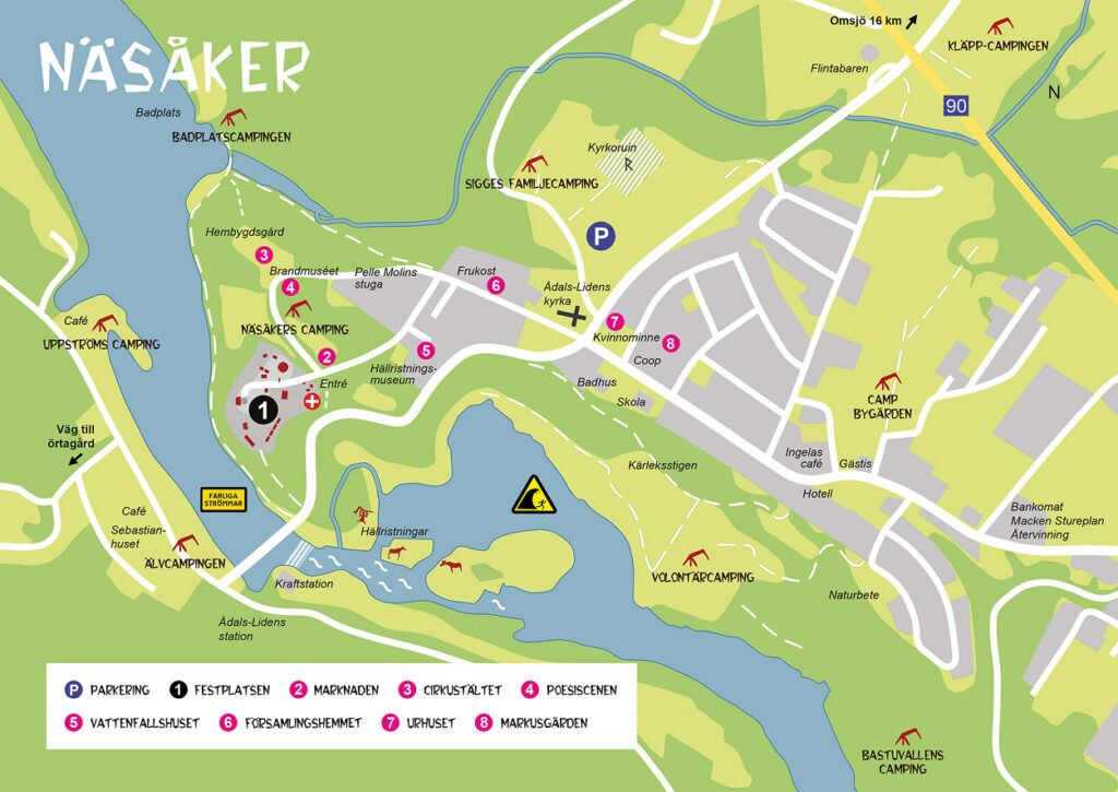 Observera att camping inte ingår i festivalbiljetten! Däremot måste en ha festivalband för att få bo på campingarna under festivalhelgen.